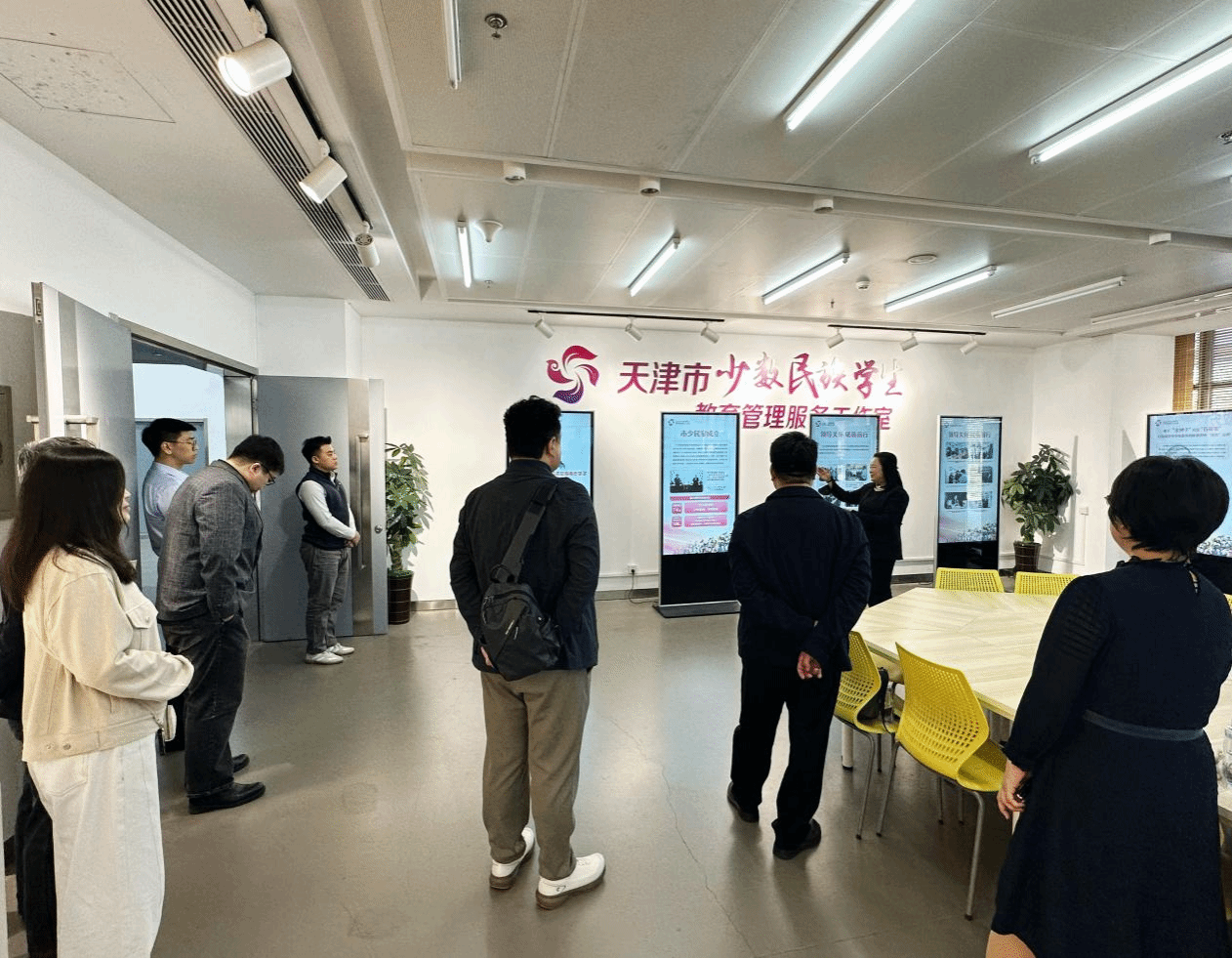 评审会后,与会领导和专家参观了天津市少数民族学生教育管理服务工作室、民族文创展厅、天津市铸牢中华民族共同体意识思政课重点实验室,详细了解历届赛事成果展示及校园民族团结进步教育阵地建设情况,对天津以思政为引领、以文创为载体、以服务为支撑的民族团结进步工作模式给予充分肯定。
