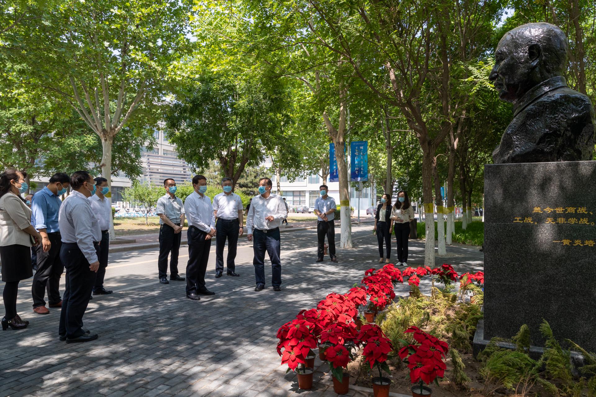 5月20日,市委常委、市委教育工委书记王庭凯到我校专题调研“迎盛会、铸忠诚、强担当、创业绩”主题学习宣传教育实践活动工作和“青春献礼二十大 奋斗担当铸忠诚 强国有我新征程”主题宣传教育活动的开展情况,提出具体工作要求,推动教育实践活动工作不断深入、取得实效。市委教育工委委员、市政府教育督导室总督学王秋岩,校党委书记张金刚,校党委副书记李靖,校党委常委、副校长吕景泉、李富森陪同调研考察。
